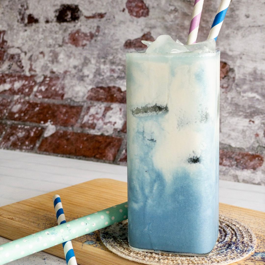 นมงาขาว 1 แก้ว ไม่มีน้ำตาล มีไขมันดี ช่วยให้สมูทตี้เนื้อละมุนหอมมันมากขึ้น แถมได้แคลเซี่ยม