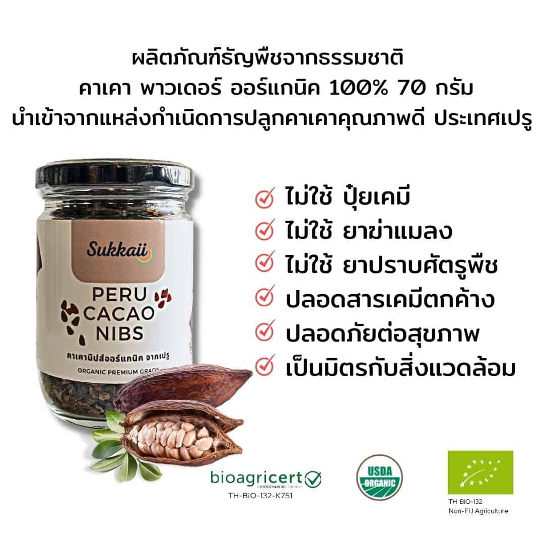 เพราะคัดจากเมล็ดคาเคาออร์แกนิค จากประเทศเปรู ผ่านการตรวจสอบและได้certified organic ตามมาตรฐานสากล